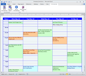 Sample School Schedule in Word with Google & Outlook Calendar data.