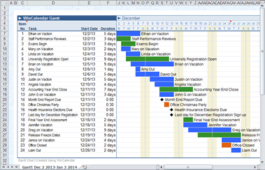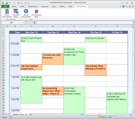 Create calendars in native Microsoft Word & Excel format in a variety of customizable layouts. You can create Calendars (monthly and weekly), Schedules, Agendas, Gantt Charts and Spreadsheet Tables from Calendar data.