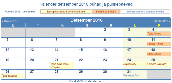 detsember 2016 Kalender printida - Eesti