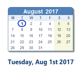 August 1, 2017 calendar