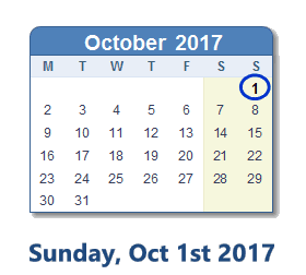 October 1, 2017 calendar