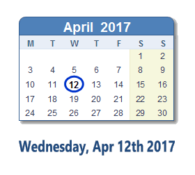 April 12, 2017 calendar
