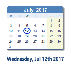 July 12, 2017 calendar
