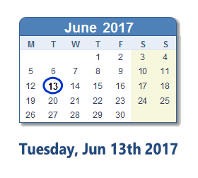 June 13, 2017 calendar