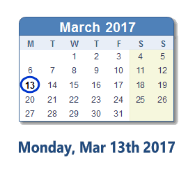 March 13, 2017 calendar