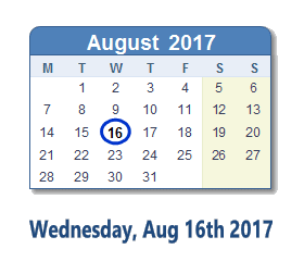 August 16, 2017 calendar