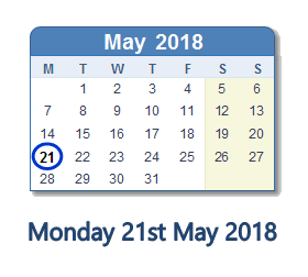 • on the 21st week of 2018 (using ISO standard week number calculation).