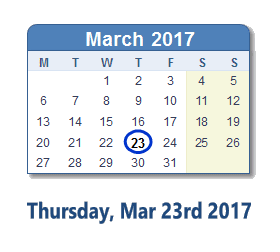 March 23, 2017 calendar