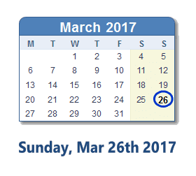 • 26 March 2017 was the 26th day of Lent (Christian Observance).