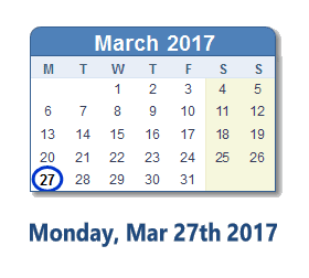 March 27, 2017 calendar