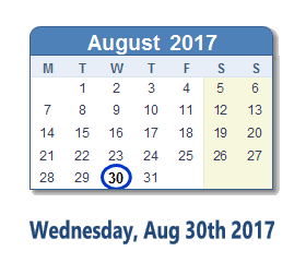 August 30, 2017 calendar