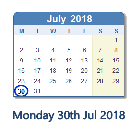 • on the 31st week of 2018 (using ISO standard week number calculation).