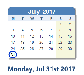 • on the 31st week of 2017 (using ISO standard week number calculation).