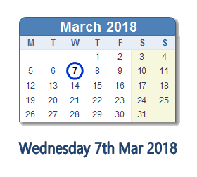 March 7, 2018 calendar