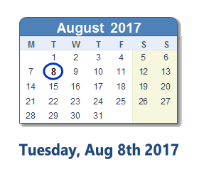 • on the 32nd week of 2017 (using ISO standard week number calculation).