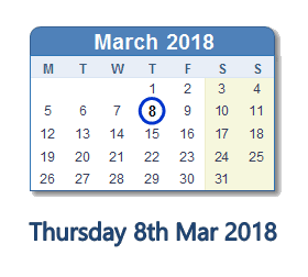 • on the 10th week of 2018 (using ISO standard week number calculation).