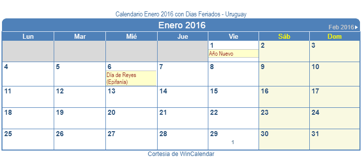 Volver al calendario Uruguay interactivo de WinCalendar