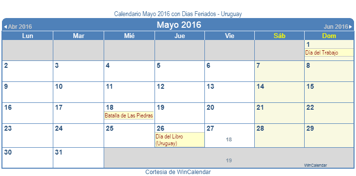 Volver al calendario Uruguay interactivo de WinCalendar
