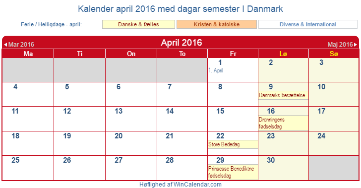 Tilbage til WinCalendar interaktiv DNK Kalender
