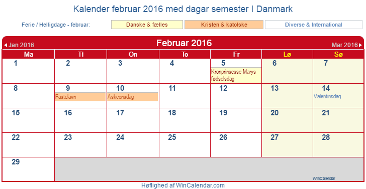 Tilbage til WinCalendar interaktiv DNK Kalender